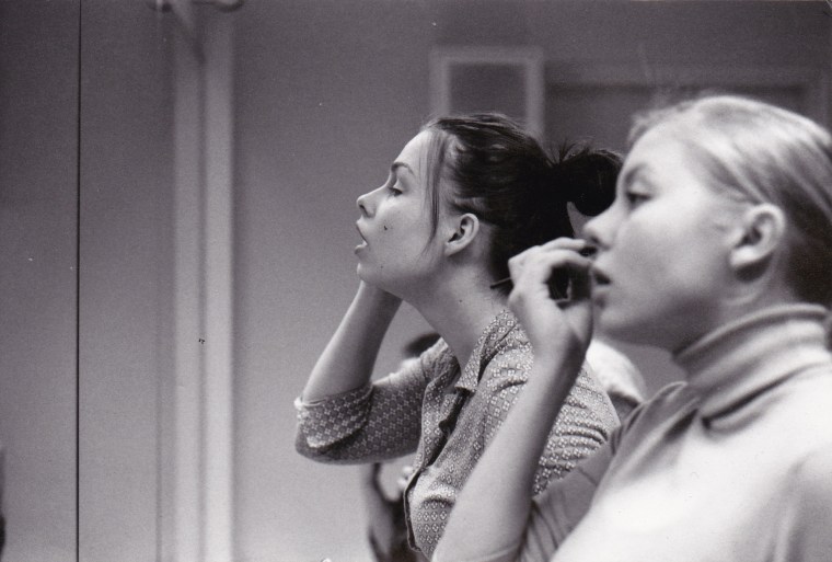 Perustajajäseniä Aurora Karamzinin meijerikoulun pihalla maaliskuussa 1997.